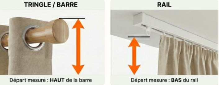 Prenez la mesure depuis le haut de la barre (Oeillets) ou le dessou du rail (Galon)